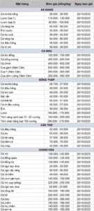 Bảng giá thủy sản tuần 16/10 – 20/9/2023