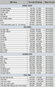 Bảng giá thủy sản tuần 02/10 – 06/10/2023