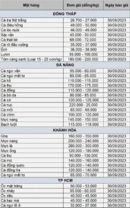 Bảng giá thủy sản tuần 25/9 – 29/9/2023