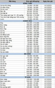 Bảng giá thủy sản tuần 4/12 – 8/12/2023