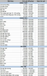 Bảng giá thủy sản tuần 11/12 – 15/12/2023
