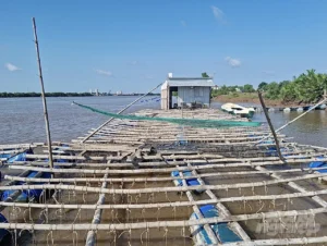 TRÀ VINH Người dân tự phát nuôi hàu bằng lồng bè trên địa bàn huyện